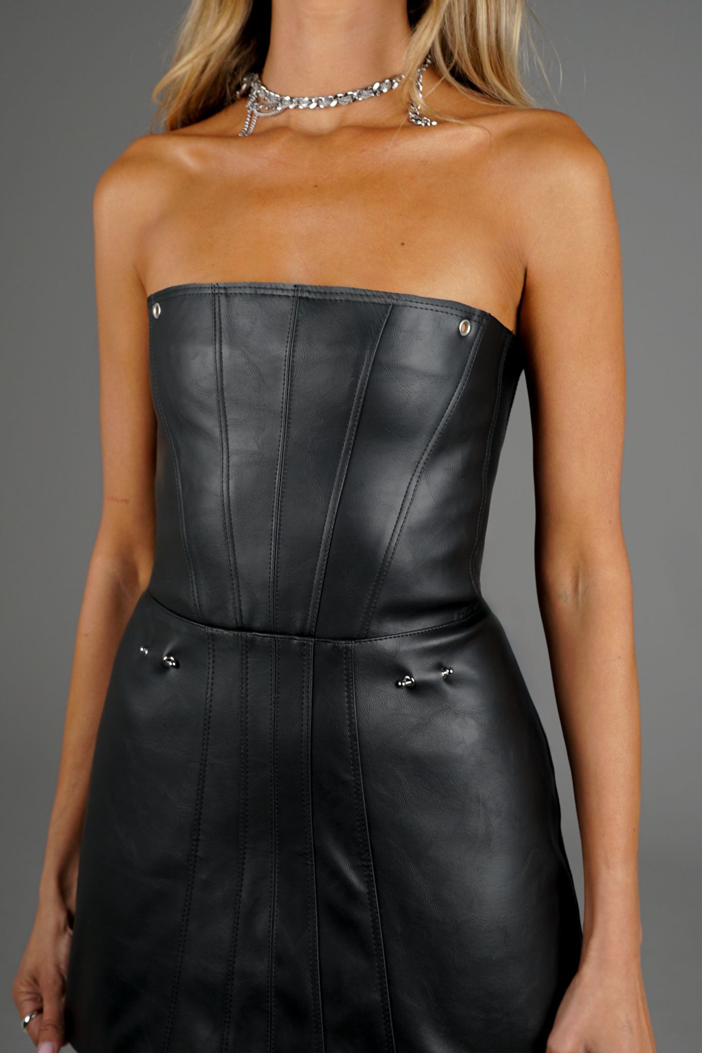 שמלת מיני מבד דמוי עור יוקרתי במיוחד