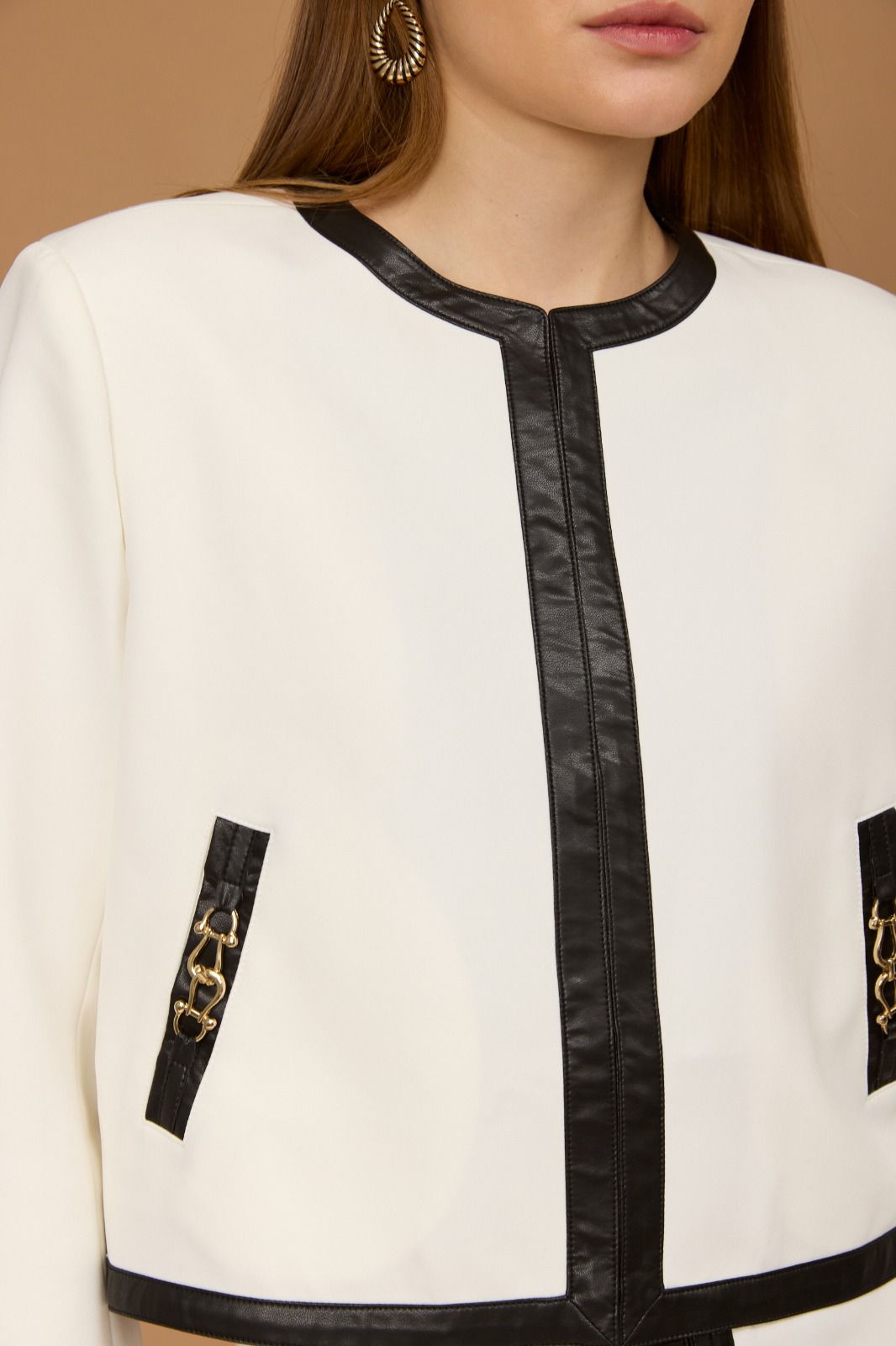 גקט מושלם עם עיטורי עור ושילוב של דיטל באזור הכיסים