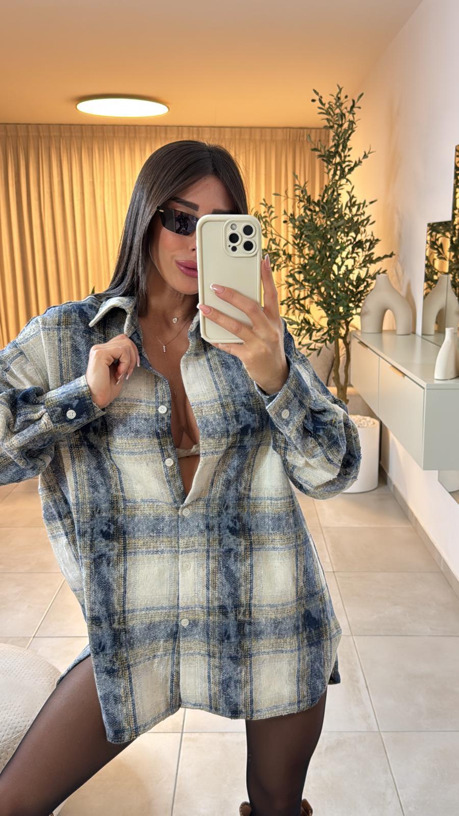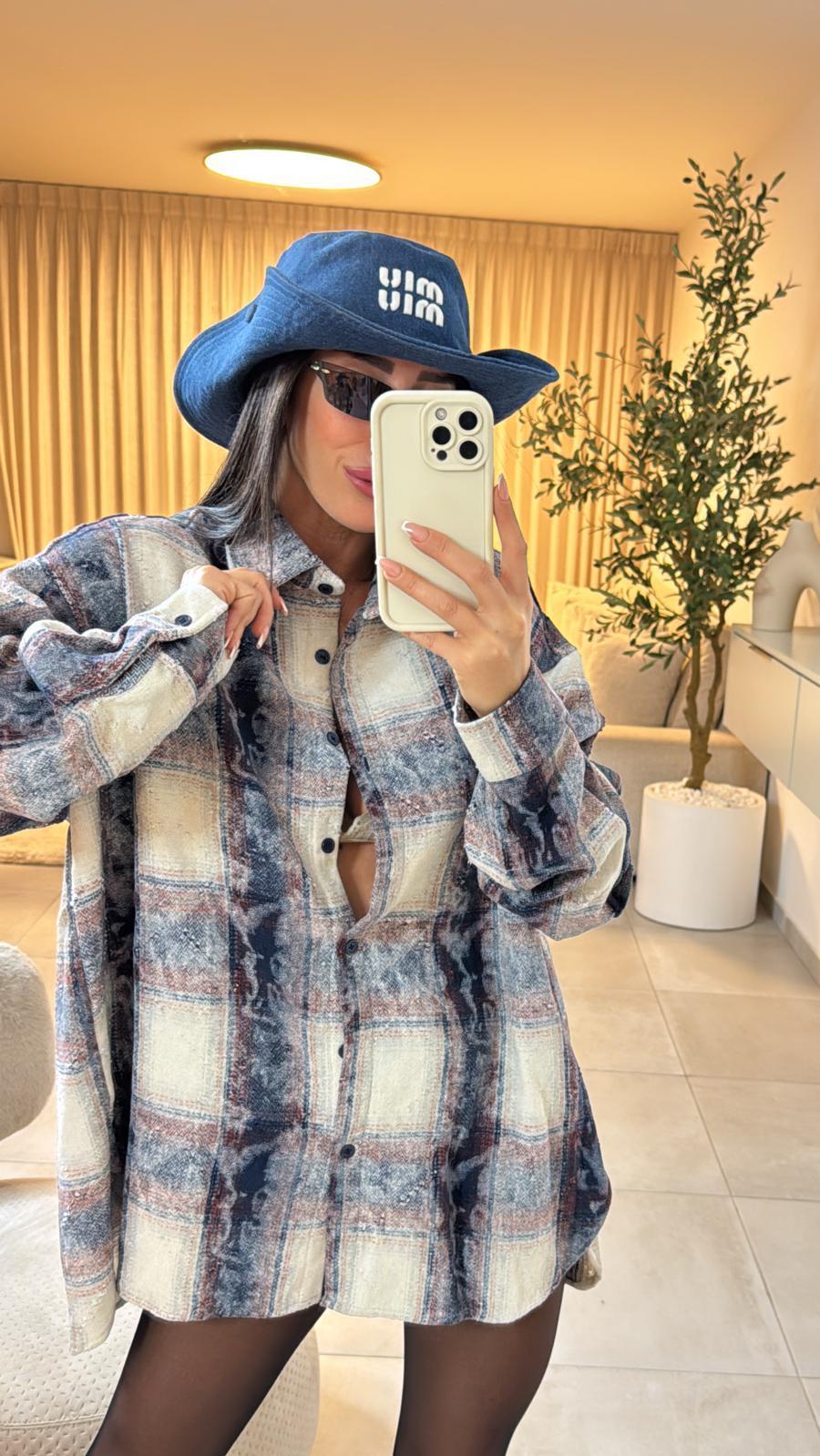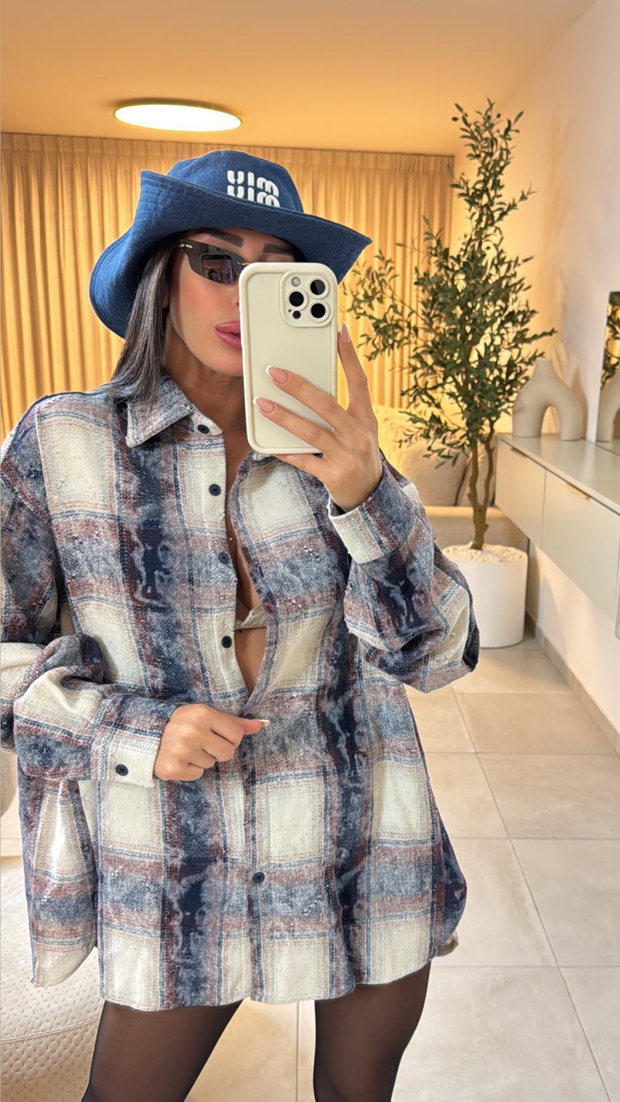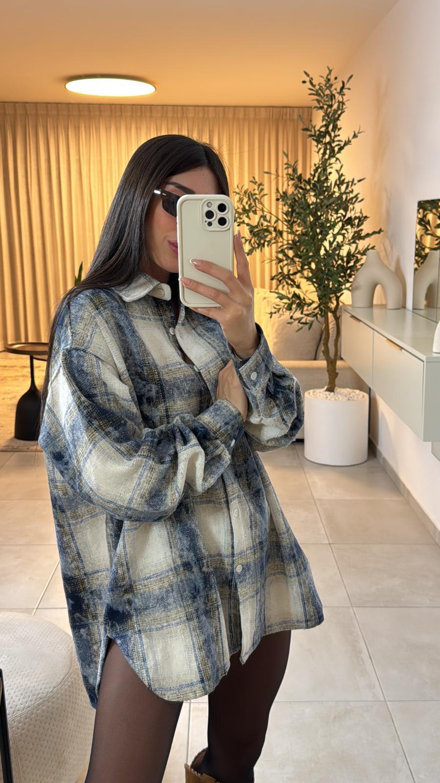 חולצת משבצות אוברסייז, בד פלאנל נעים למגע,