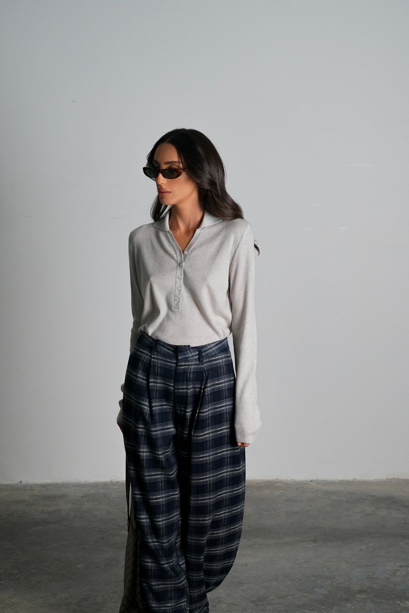 חולצה עם צווארון בד ריב שרוולים ארוכים