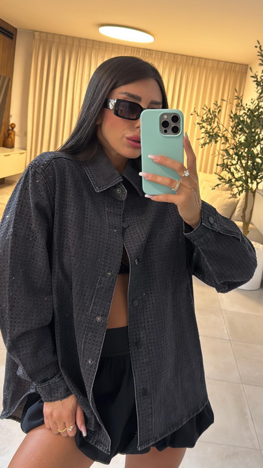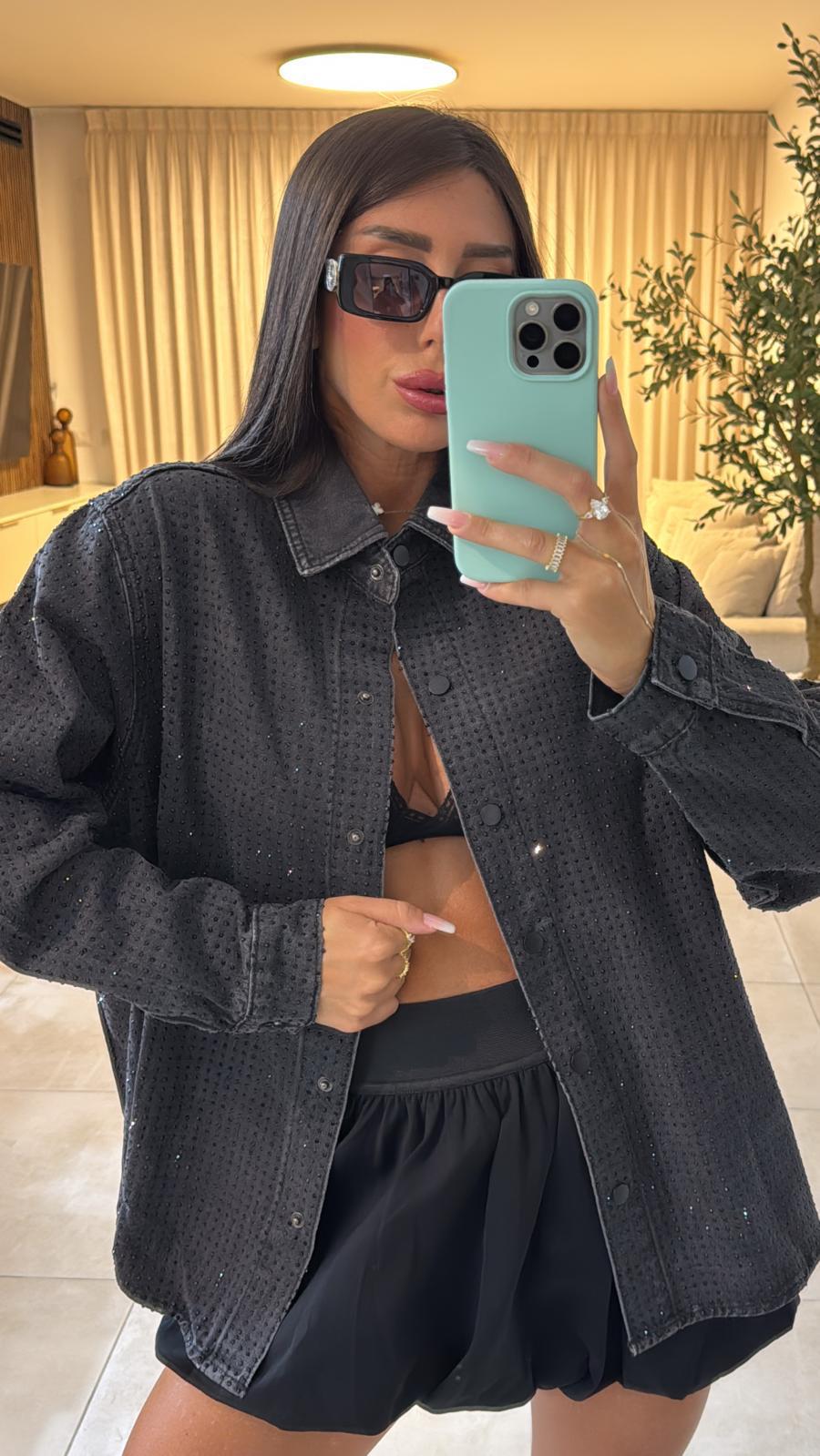 מכופפתרת בד גינס עבה, בשילוב אבנים קטנות ומנצנצות.
