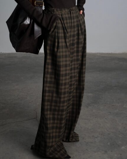 מכנס משבצות- בד נשפך על הגוף,